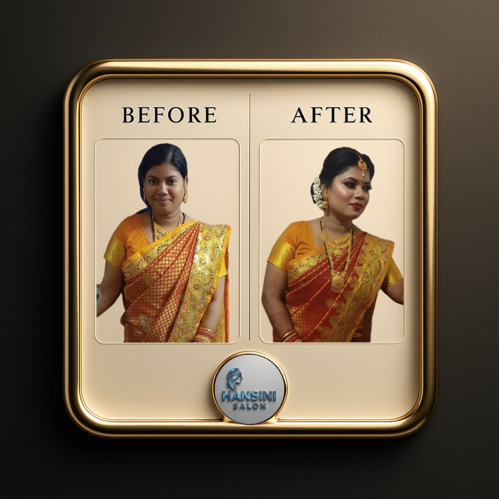 What impressed me most was their professionalism. The staff are polite, knowledgeable, and focused on delivering personalized service. I also noticed a bride getting ready, and she looked absolutely stunning. It was clear why Hansini Salon is highly regarded as the Best Makeup Artist In Puri and particularly the best wedding makeup artist in puri Nabakalebara road.